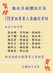 ¼Æ´C¨t¦P¾Ç©ó100¦~6¤ë12¤é°Ñ¥[ITE¸ê°T±M·~¤Hû¹CÀ¸¤º®eÃþ--¹CÀ¸¥ø¹º±M·~¤HûŲ©w¦Ò¸Õ¡Ap¦³17¦ì¦P¾Ç¥HÀu²§ªº¦¨ÁZ³q¹L´úÅç¡A¨ú±o¹CÀ¸¥ø¹º±M·~¤HûÃҮѡA¦¹ÃÒ®ÑÀò±Ð¨|³¡¤Î§Þ±M¸ê®Æ®w»{¥i¡A¦b¥»®ÕÃÒ·Ó¤À¯Åªí¤¤¥ç¦C¬°B¯Å¼ú§U¡C¹CÀ¸¥ø¹º±M·~¤Hû¬°¼Æ´C¨t±Ð¾Ç¥Ø¼Ð·¥±ý°ö¨|ªº¤H¤~¤§¤@¡A¦¹¦¸¦P¾ÇÌÀu¨}ªºªí²{¡AÃÒ©ú¤F¦Û¤v¥¼¨Ó¦b¾³õ¤§¥ø¹º¯à¤O»P¨t¤W¦Ñ®v¨¯¶Ô±Ð¾Çªº¦¨ªG¡C