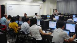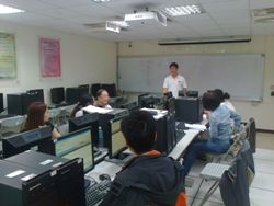 行管系王台榮老師於100年8月23日至25日辦理「建置數位e-learning教學平台與數位教材實作」活動,邀請台灣智財公司技術總監莊瑞南老師,對各院教師示範電子學習軟體平台操作與實作的方式,並配合Q/A進行。活動時間共計18小時,由活動承辦老師擔任助教,掌控學習進度,參與活動教師均與業師有良好的互動,不僅認真投入學習,有問題也能及時獲得解答,實質獲益頗豐。