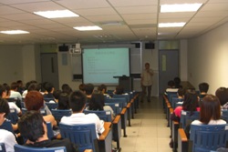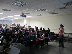 研發處於100年10月7日晚間辦理「菁英創業學程-贏在起跑點」的講座,邀請倚強科技總經理特助陳珮瑛小姐,就「管理你的利害關係人」的主題與同學們進行分享和討論,探討職場中與同事、其他部門同事、主管、專案主管及老闆間的關係,提供同學們對利害關係人作謹慎對應和評估的方式,以妥善管理及發展職場關係。